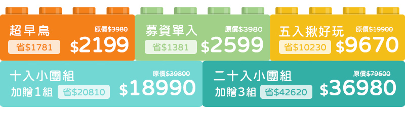 ▶晚鳥單入組$2199,未來定價3980元/組